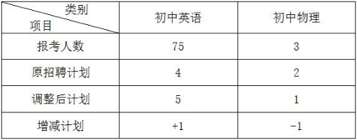 我市初中、小學、幼兒教師招聘報名于2016年7月6日截止,因初中物理學科報名人數(shù)不足(招聘人數(shù)與報名人數(shù)之比未達到1:3),根據(jù)《常寧市2016年公開招聘教師方案》對其計劃需進行調(diào)整,經(jīng)常寧市教師招聘領導小組研究決定,對相關學科招聘計劃調(diào)整如下: