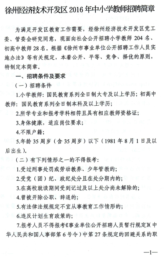 2016年江蘇省徐州經濟技術開發區教師招聘簡章(228名)