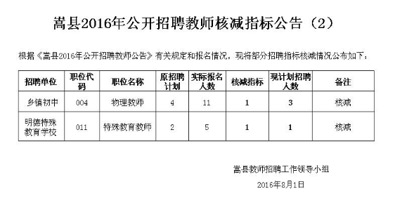 2016年河南省洛陽市嵩縣教師招聘核減指標公告(2)