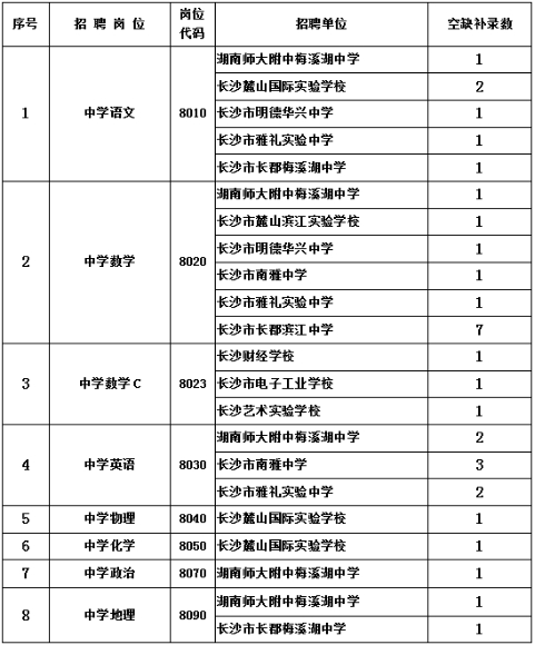 本次空缺崗位補充錄用的對象為:在2016年長沙市教育局直屬單位教師招聘中,報考崗位為本次補充錄用崗位,且考核成績達合格分數(80分)及以上的人員(共104人,詳見附件)。