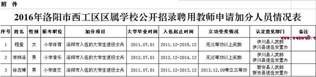 2016年洛陽市西工區(qū)區(qū)屬學(xué)校公開招錄聘用教師申請加分人員公示