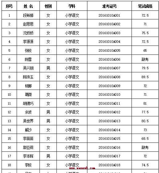 漢陰縣2016年邊遠(yuǎn)山區(qū)小學(xué)合同制教師招聘考試(筆試)成績公告