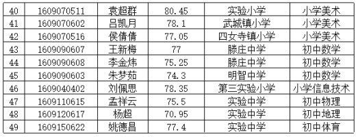 附:武城縣2016年公開招聘中小學后備教師擬聘用人員名單