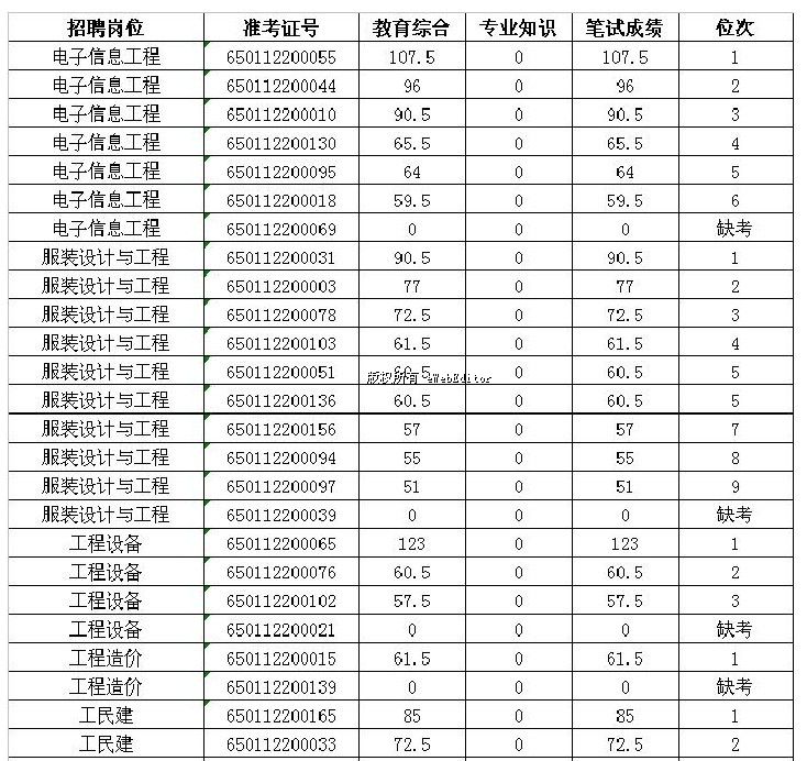 2012年福建省泉州市惠安縣中小學(xué)新任教師招聘筆試成績(jī)公示