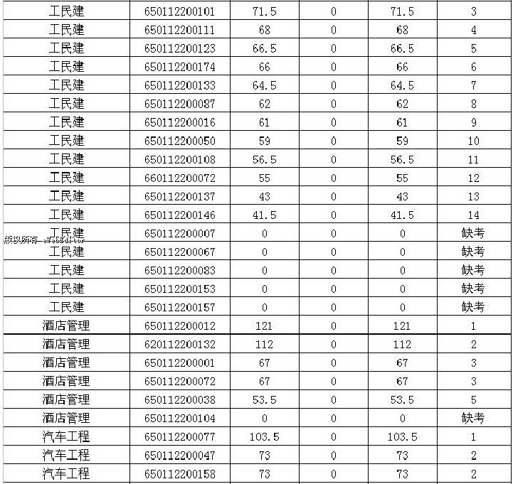 2012年福建省泉州市惠安縣職校新任教師招聘全省統(tǒng)一筆試成績(jī)