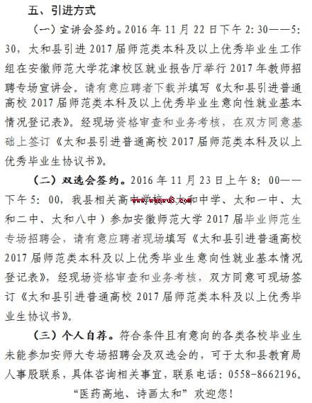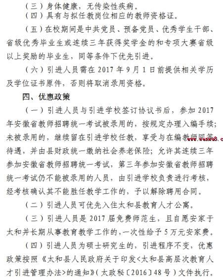 太和縣引進(jìn)2017屆師范類本科及以上優(yōu)秀畢業(yè)生啟事