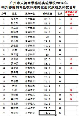 附件:1. 廣州市天河中學獵德實驗學校2016年編外聘用制專任教師結構化面試成績及試教名單