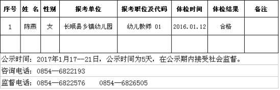 長順縣2016年面向社會公開招聘教育系統(tǒng)事業(yè)單位工作人員體檢結(jié)果公示(第二批)