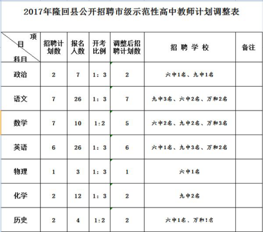 關(guān)于公布2017年隆回縣公開招聘市級示范性高中教師崗位計劃調(diào)整的通知