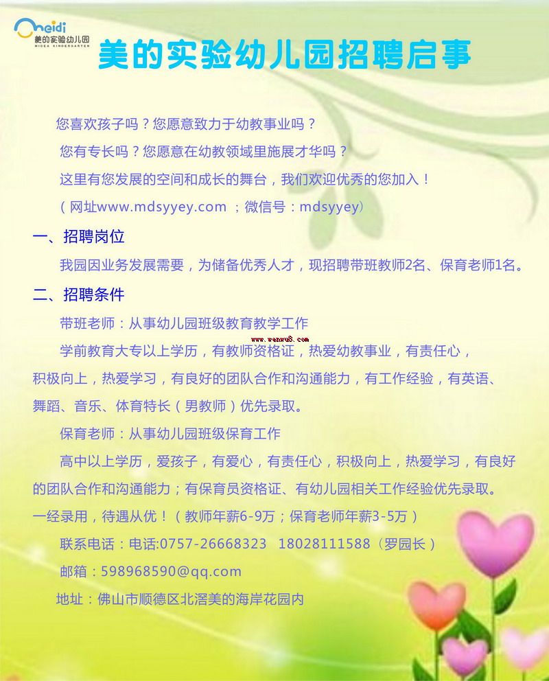 2017年廣東省佛山市順德區美的實驗幼兒園教師招聘公告