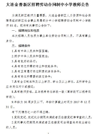 附件:附件1—大連金普新區招聘勞動合同制中小學教師崗位計劃.xls