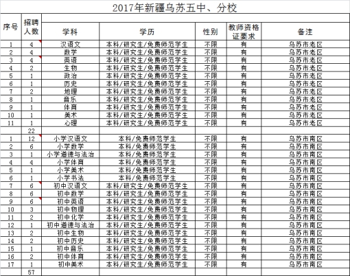 烏蘇市第五中學(xué)位于烏蘇市新華路101號(hào),2011年8月由于教育布局調(diào)整,始建于1952年的烏蘇市第一中學(xué)校址變更為烏蘇市第五中學(xué),現(xiàn)為一所漢語(yǔ)言初級(jí)中學(xué)。學(xué)校教育教學(xué)設(shè)施配套齊全,校園面積11.25萬(wàn)平方米,建筑面積3.165萬(wàn)平方米,綠地面積5.44萬(wàn)平方米,硬化面積2.078萬(wàn)平方米,運(yùn)動(dòng)場(chǎng)面積數(shù)2.8萬(wàn)平方米,F(xiàn)有教職工185人,少數(shù)民族教師36人。現(xiàn)有50個(gè)教學(xué)班,實(shí)行小班額制。學(xué)生總?cè)藬?shù)2041人,其中新疆區(qū)內(nèi)初中班學(xué)生229人。