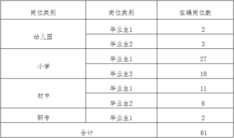 年及以上。小學及初中畢業生1崗位須從事所報崗位學校類別相應學科教學工作2年及以上(如:小學語文畢業生1崗位須從事小學語文教學工作2年及以上);職業中專畢業生1崗位須從事所報崗位相關學科教學工作2年及以上。(工作經歷可提供聘用合同、單位證明或專技考核表)。幼兒園畢業生2崗位須從事幼兒教學工作(非應屆畢業生)。