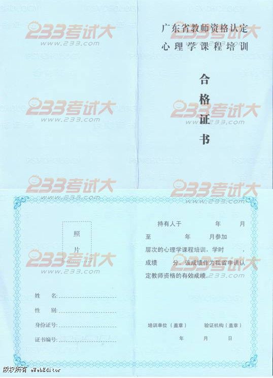 附件:1.廣東省教師資格認定教育學心理學課程培訓合格證書(樣式)