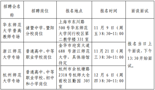 校園招聘工作由諸暨市教育局在諸暨市人才工作領導小組辦公室、人力資源和社會保障局、派駐教育局紀檢監察組等職能部門的監督指導下開展。對符合條件的 2019 年應屆高校優秀畢業生,通過現場資格審核、現場面談和面試,擇優現場簽約預錄用。諸暨市教育局面向 2019 年高校應屆優秀畢業生校園招聘會專場地點分別設在華東師范大學、浙江師范大學、杭州師范大學。