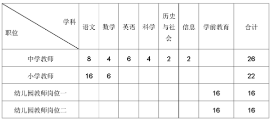 2019年我市計劃公開招聘事業編制教師共67人,招用雇員制教師共80人,具體如下: