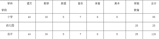 1.命題范圍:⑴報考小學教師,考所報學科高中知識或略有突破;⑵報考農村幼兒園教師,考學前教育知識。考試時間均為120分鐘,滿分均為100分。