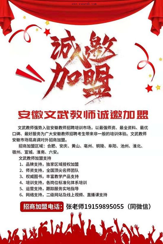 謹防受騙提示:如果報名時出現收費或匯款等情況,請廣大考生注意分辨真偽,謹防上當受騙 特別說明:由于各方面情況的不斷調整與變化,文武網所提供的所有考試信息僅供參考,敬請考生以權威部門公布的正式信息為準。 本站教師招聘信息來自各地人社局、政府網、人事考試網、教育局、高校、中小學等官方信息,快速及時、權威可靠。如果有侵犯版權請qq:3412729300聯系我們,我們將在24小時之內刪除! |