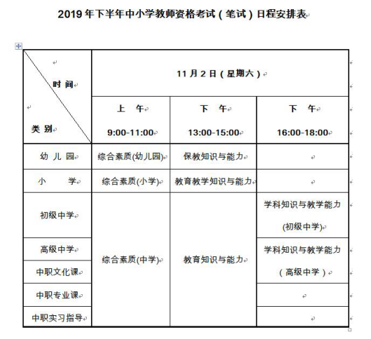 考試日期為2019年11月2日(周六),各科目筆試考試時(shí)間為120分鐘。