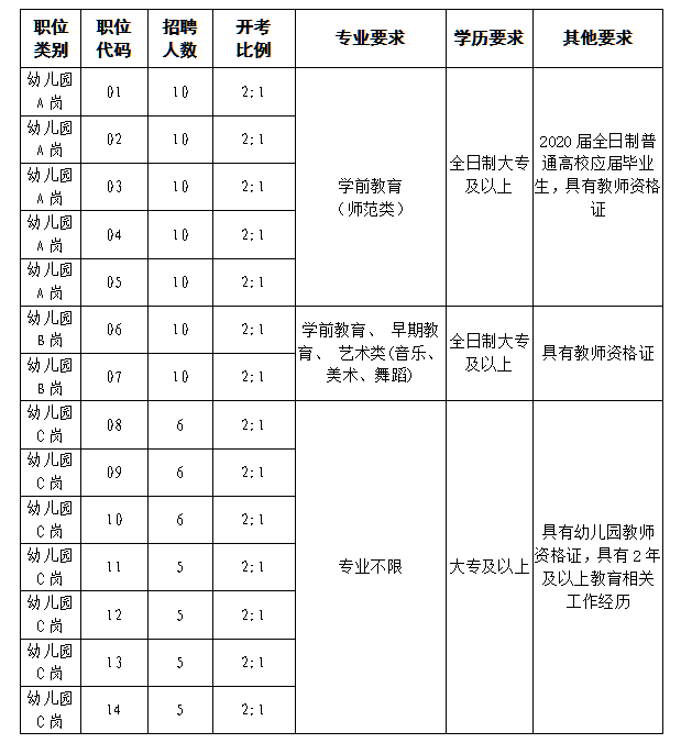 附件:2020年張家港市招聘幼兒園備案制教師崗位簡介表