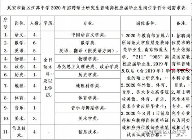 2020年陜西延安市新區江蘇中學教師招聘公告【40人】