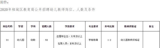 附件:2020年相城區教育局公開招聘幼兒教師崗位、人數及條件