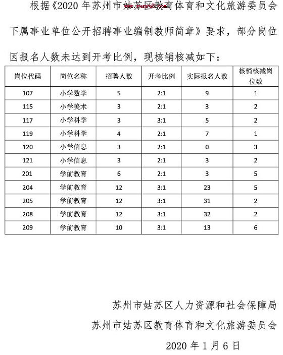 江蘇教師招聘 蘇州市姑蘇區2020年1月教師招聘崗位核銷核減公告