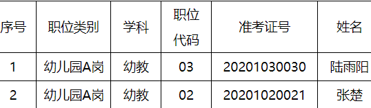 根據《張家港市公開招聘幼兒園備案制教師簡章》“擬錄用人員主動放棄錄用資格的,在報考同一職位的人員中,按考試成績總分從高分到低分依次遞補”的相關規定,現將遞補進入體檢人員名單公告如下: