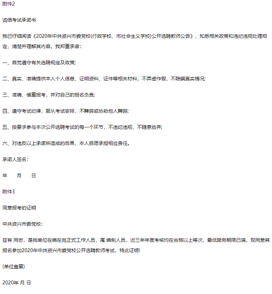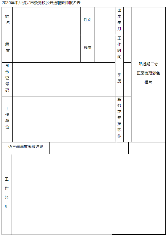 附件1:《2020年中共資興市委黨校公開選聘教師報名表》