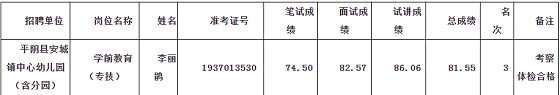 山東教師招聘 濟(jì)南平陰縣2019年教體系統(tǒng)事業(yè)單位公開招聘教師擬聘用人員補(bǔ)充公示
