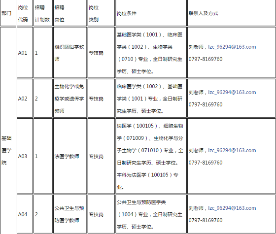 江西教師招聘 南昌贛南醫學院2020年公開招聘教師公告