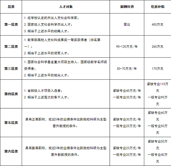 4、具有省部級人才頭銜或主持國家社科基金重大、教育部人文社科重大研究項目經歷,可應聘安徽大學第四層類的高層次人才,待遇從優。