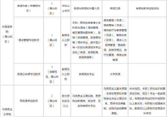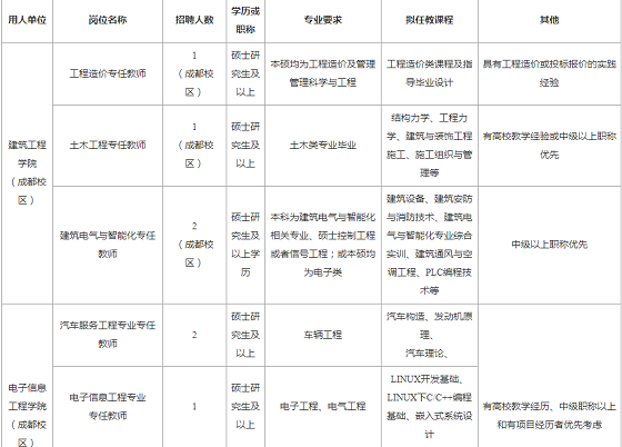 詳見附表《四川工商學(xué)院2020年專任教師需求信息表》。