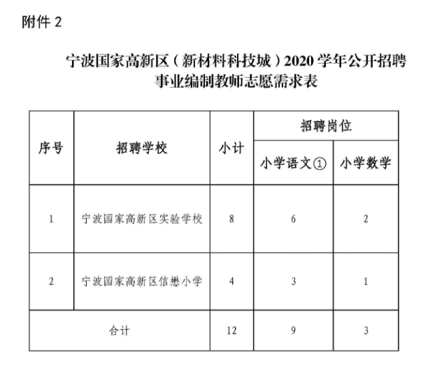 2.寧波國(guó)家高新區(qū)(新材料科技城)2020學(xué)年事業(yè)編制教師招聘需求表