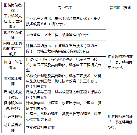 根據《事業單位人事管理條例》(國務院令第652號)、《事業單位公開招聘人員暫行規定》(原人事部令第6號)、《關于事業單位公開招聘試行多元化辦法的通知》(青人社字〔2014〕19號)、《青島市事業單位公開招聘工作規程(試行)》(青人社發〔2017〕3號)以及青島市有關規定和要求,青島市即墨區高級技工學校面向2020年應屆本科及以上高校畢業生招聘教師10名,現公告如下: