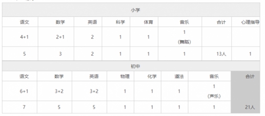 學校自2018年9月開始招生,現有小學兩個年級,初中兩個年級,現有在校生400余人,專職教師60人,具有高級職稱13人,研究生學歷24人,根據學校發展需要,擬補充部分學科教師,現面向社會公開招聘。