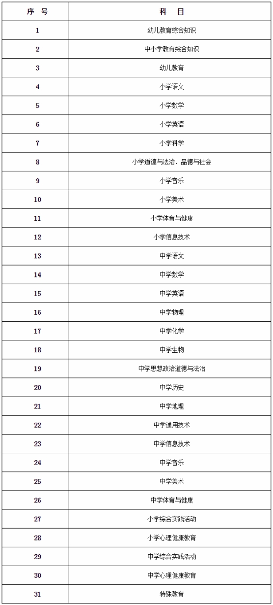 附件:中小學幼兒園新任教師公開招聘筆試科目類別