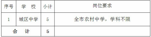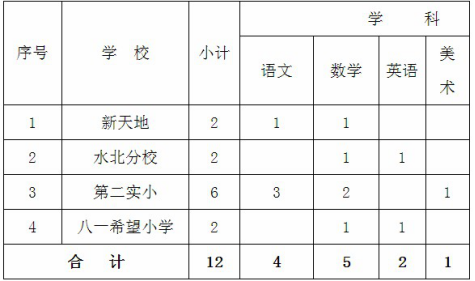 2、城區(qū)中學面向農村中學選調教師;城區(qū)小學面向農村小學選調教師;八一希望小學面向其他農村小學選調教師,第二幼兒園面向其他農村幼兒園選調教師。(因工作需要調整到農村中學任教的具有小學教師資格證的原農村小學教師也可報名參加小學選調)