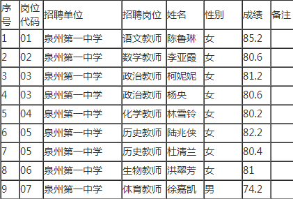 福建教師招聘 泉州市直部分公立學(xué)校2020年專項(xiàng)公開招聘教師入圍人員公示(三)