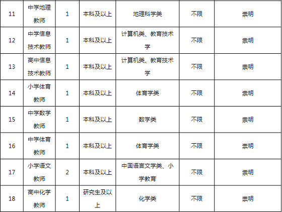 上海教師招聘 上海市崇明區(qū)2020年教育局招聘公告【42人】