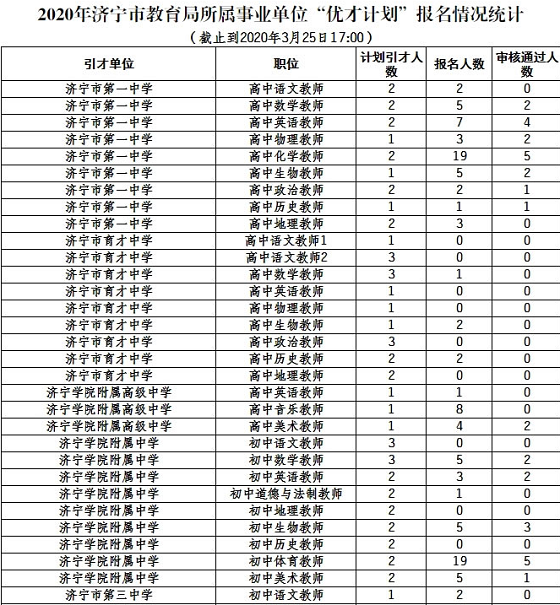 山東教師招聘 濟寧市教育局所屬事業單位2020年“優才計劃”報名情況統計