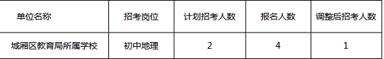 關于福建莆田城廂區2020年公開招聘新任教師初中地理崗位招考人數調整的公告