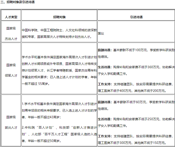 3.具備沖擊國家級青年人才計劃潛力的優秀人才,學校重點支持。凡依托我校申報國家級青年人才項目,進入會評階段但最終未入選者,將比照國家級青年人才部分待遇引進。