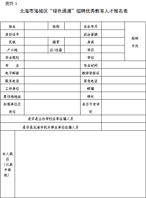 3.北海市海城區(qū)“綠色通道”招聘優(yōu)秀教育人才報(bào)名表