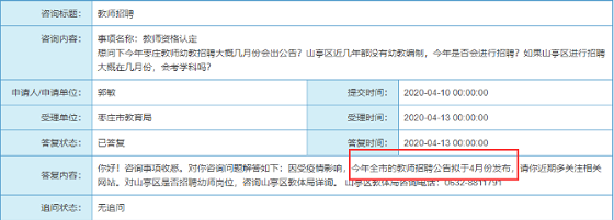 官方回復(fù)山東棗莊教師招聘公告擬于4月份發(fā)布,希望各位考生積極備考,不要太過緊張。