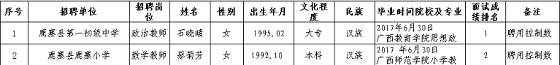 廣西教師招聘 柳州市鹿寨縣2019年中小學教師招聘擬聘用人選公示(第四批)