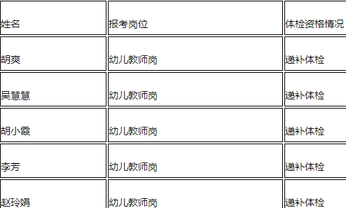 一、因幼兒教師崗(101崗)部分考生放棄體檢,現遞補體檢人員名單: