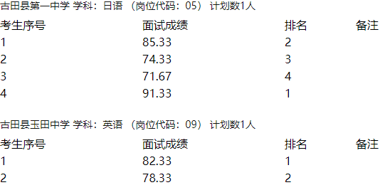 福建寧德古田縣2020年公開招聘碩士及以上學(xué)位新任教師面試成績公示