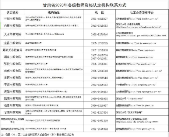 附件:甘肅省2020年各級教師資格認定機構聯系方式