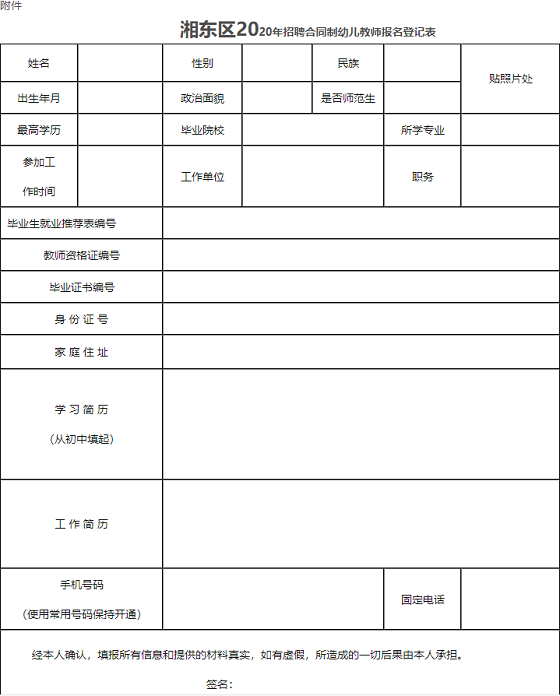 附件:湘東區(qū)2020年招聘合同制幼兒教師報(bào)名登記表